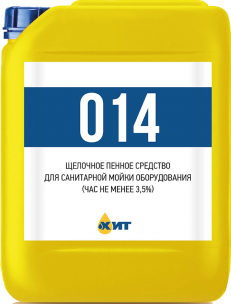Хит щелочной 014 представляет собой щелочное высокопенное моющее средство на основе четвертичных аммонийных соединений ЧАС. Применяется для санитарной мойки пищевого оборудования и других поверхностей во всех отраслях пищевой промышленности. Эффективно удаляет жировые, белковые, масляные и другие виды органических загрязнений. Благодаря входящему в состав ЧАС (алкилдиметилбензиламмоний хлорид) обладает дезинфицирующим эффектом. Массовая доля ЧАС в препарате не менее 3,5%. Эффективен в воде повышенной жесткости.