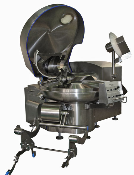 Куттер комплектуется гидравлическим подъемником-загружателем для загрузки исходного сырья в чашу.
