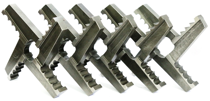 При применении зубчатых крестовых ножей и решеток жилки и плёнки захватываются зубьями решётки и крестового ножа, в результате не происходит накручивание плёнок и жилок на хвостовик шнека и они также измельчаются как и мышечное сырьё. Длина волокон плёнок и жилок после измельчения будет такая же, как и у мышечной ткани.
