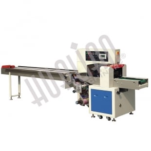 Горизонтальная упаковочная машина DXDZ-450X с нижней подачей от компании Hualian – одна из самых популярных моделей в ассортименте. Максимальная ширина используемой пленки – 450 мм.