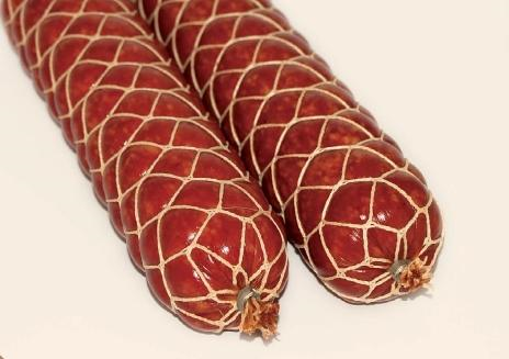 Необычная форма ячеек составит достойную альтернативу стандартным вариантам сетки. Ячейки небольшого размера выглядят интересно и аккуратно, выгодно подчеркивают форму колбасы. Особенно хорошо смотрятся в натуральных цветах.