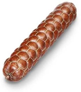 Жесткая структура сетки позволяет добиться значительных выпуклостей на поверхности колбасы даже при небольшом размере ячеек.